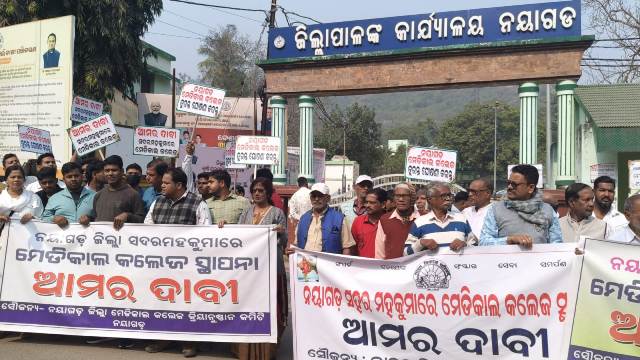 ବିଶ୍ୱ ଭୂଷଣ ମହାପାତ୍ରଙ୍କ ରିପୋର୍ଟନୟାଗଡ଼,୨/୧ : ନୟାଗଡ଼ ଜିଲ୍ଲା ସଦରମହକୁମାରେ ମେଡିକାଲ କଲେଜ ସ୍ଥାପନ ପାଇଁ ଆଜି ବିଶାଳ ଶୋଭାଯାତ୍ରା ଅନୁଷ୍ଠିତ ହୋଇଯାଇଛି ।ନୟାଗଡ଼ ଜିଲ୍ଲା ମେଡିକାଲ