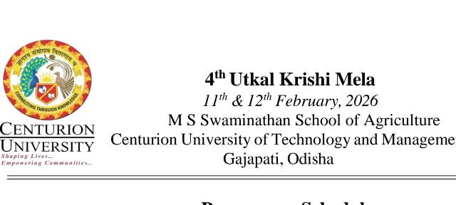 ଗଣେଶ କୁମାର ରାଜୁଙ୍କ ରିପୋର୍ଟଗଜପତି, ୧୦/୨ : ସେଞ୍ଚୁରିଆନ ୟୁନିଭର୍ସିଟି ଅଫ୍ ଟେକ୍ନୋଲୋଜି ଆଣ୍ଡ୍ ମ୍ୟାନେଜମେଣ୍ଟ, ପାରଳାଖେମୁଣ୍ଡି ରେ ୪ର୍ଥ ଉତ୍କଳ କୃଷି ମେଳା ୨୦୨୬ ଆସନ୍ତା