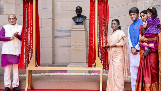 NEW DELHI, FEB 23 : President Droupadi Murmu on Sunday unveiled a bust of Chakravarti Rajagopalachari at Rashtrapati Bhavan, replacing the statue of British architect Edwin Lutyens, a move the