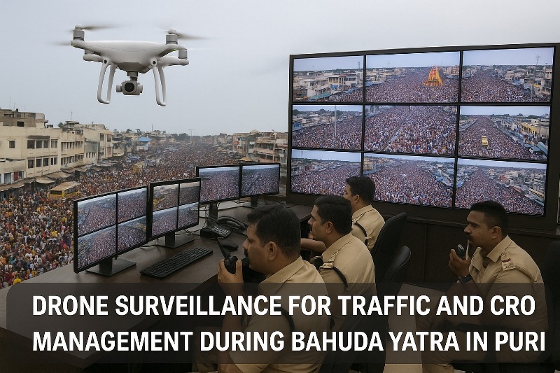 By Nalini Sahu Bhubaneswar, July 4: To ensure seamless traffic flow and effective crowd management during the Bahuda Yatra in Puri, Odisha Police administration introduced an independent drone surveillance system
