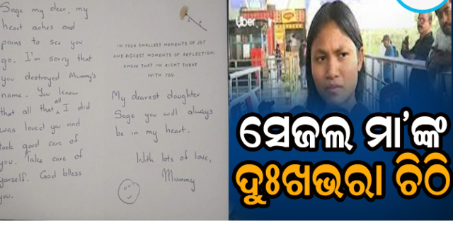 ବାଲେଶ୍ୱର,୧/୧୨ : ସାମ୍ନାକୁ ଆସିଛି ସେଜଲଙ୍କ ପାଳିତ ମା’ଙ୍କ ଆବେଗଭରା ଚିଠି। ଏଥିରେ ସେ ଲେଖିଛନ୍ତି, ତୁମେ ଚାଲିଯାଉଥିବାରୁ ମୋ ହୃଦୟ କଷ୍ଟ ଓ ଯନ୍ତ୍ରଣାରେ ଭରିଯାଉଛି।