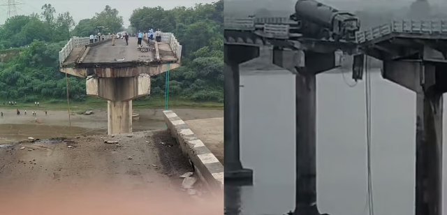 AHMEDABAD, JUL 9 : At least nine people were killed and five others rescued after several vehicles fell into a river when a portion of the four-decade-old Gambhira Bridge near