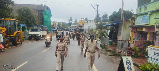 ଅରୁଣ ସାହୁଙ୍କ ରିପୋର୍ଟକନ୍ଧମାଳ, ୨୮/୯: କନ୍ଧମାଳ ଜିଲ୍ଲା ଦାରିଙ୍ଗବାଡି ଥାନା ପୋଲିସ ପକ୍ଷରୁ କନ୍ଧମାଳ ଏସପି ହରିଶ ବିଶି ଙ୍କ ନିର୍ଦ୍ଦେଶ କ୍ରମେ ଶନିବାର ଫ୍ଲାଗମାର୍ଚ୍ଚ କରାଯାଇଛି ।ଡିଏସପି ତଥା ଦାରିଙ୍ଗବାଡି ଥାନା ଅଧିକାରୀ କନକ ମାଝିଙ୍କ ନେତୃତ୍ୱ ରେ ଏସଆଇ