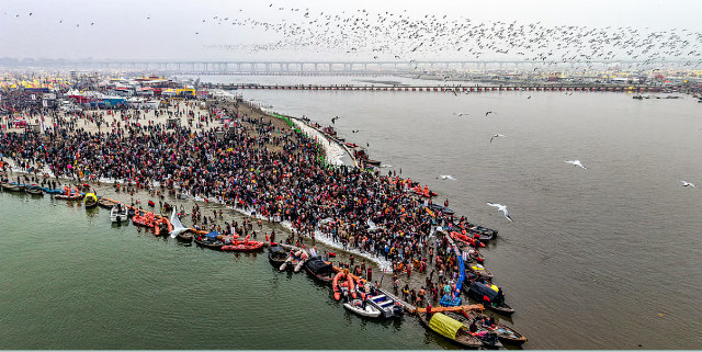 PRAYAGRAJ, FEB 12 : Amid elaborate arrangements, over 73 lakh people took a dip at the Sangam till 6 am on Wednesday on the occasion of Maghi Purnima during the