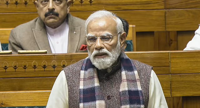 NEW DELHI, DEC 8 : Prime Minister Narendra Modi on Monday accused the Congress of breaking into pieces national song