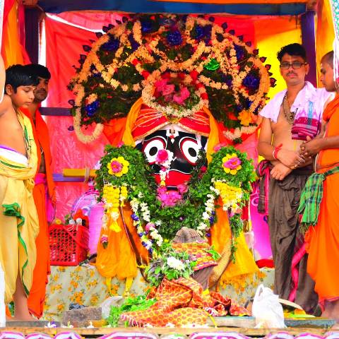 ସଞ୍ଜୟ କୁମାର ପାଣିଗ୍ରାହୀଙ୍କ ରିପୋର୍ଟବାଲିଗୁଡା, ୬/୭: କନ୍ଧମାଳ ଜିଲା ବାଲିଗୁଡାରେ ରବିବାର ସୁନାବେଶରେ ଝଲସିଛନ୍ତି ମହାବାହୁ। ଏହି ଅପରୂପ ଦୃଶ୍ୟ ଦେଖିବାକୁ ରବିବାର ସନ୍ଧ୍ୟାରେ ରଥ ନିକଟରେ