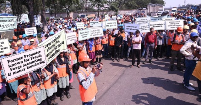 By Swagatika Mohapatra Bhubaneswar, May 7: Over 3,000 people gathered in protest on Wednesday afternoon at the Bhushan Power and Steel Ltd (BPSL) plant gate in Jharsuguda, expressing their anger